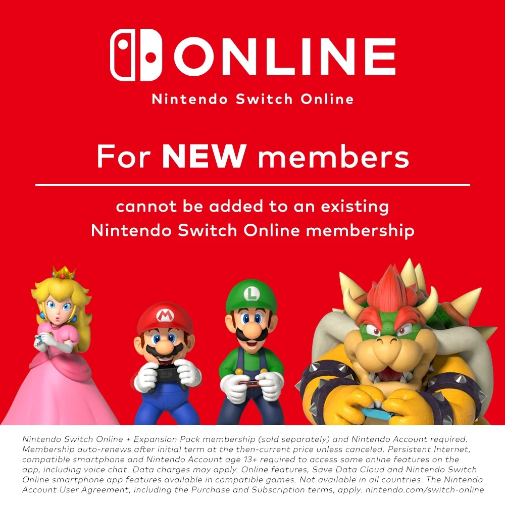 • New Members Only: Memberships are for new members only and cannot be added to an active Nintendo Switch Online membership.